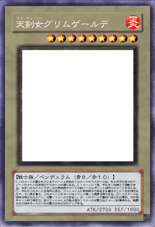 1.このカードが置かれているPゾーンと同色のこのカードのPスケールは、もう片方の自分のPゾーンのカードの同色のPスケールの値になる。2.1ターンに1度、手札を1枚捨てて発動できる。お互いのエクストラデッキの表側表示カードの数×100ポイント相手にダメージを与える。 ①:手札のこのカードを相手に見せ、フィールド上に表側表示で存在する魔法カード1枚を持ち主のデッキに戻す事で、このターンこのカードはリリース無しで通常召喚できる。②:このカードは特殊召喚されたターン、攻撃・リリースできない。③:このカードが墓地へ送られた場合、次の相手ターン終了時まで、自分フィールド上の戦士族モンスターの攻撃力はダメージ計算時のみ、戦闘を行う相手モンスターの攻撃力の半分だけアップする。 |
