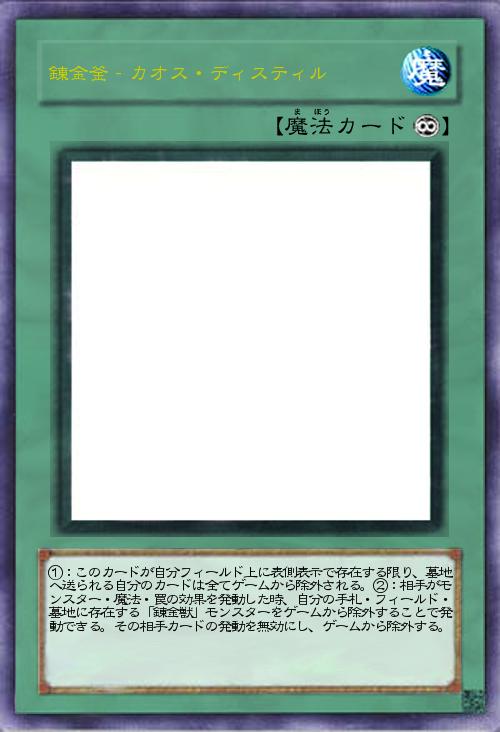 ①:このカードが自分フィールド上に表側表示で存在する限り、墓地へ送られる自分のカードは全てゲームから除外される。②:相手がモンスター・魔法・罠の効果を発動した時、自分の手札・フィールド・墓地に存在する「錬金獣」モンスターをゲームから除外することで発動できる。その相手カードの発動を無効にし、ゲームから除外する。 |
