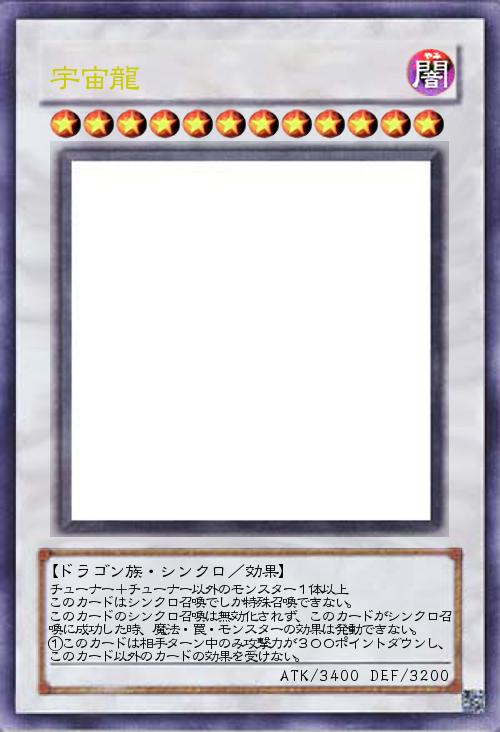 「コメントありがとうございます。星態龍と対になる存在にしたかったのでこちらは相手ターンに耐性を。しかしフリーチェンの罠に弱いのは星態龍と一緒ですねw素材に縛りがないので高レベルシンクロで出すというのはありですね!。」(2014-09-22 18:40)