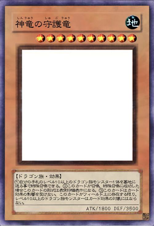 | ①自分の手札のレベル10以上のドラゴン族モンスター1体を墓地に送る事で特殊召喚できる。②このカードが召喚、特殊召喚に成功した場合このカードの形式は表側守備表示になる。③このカードはカード効果の影響を受けない。このカードがフィールド上に存在する限り、レベル10以上のドラゴン族モンスターはカード効果の対象にはならない。 | |||