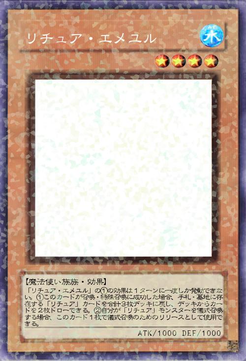 | 「リチュア・エメユル」の①の効果は1ターンに一度しか発動できない。①このカードが召喚・特殊召喚に成功した場合、手札・墓地に存在する「リチュア」カードを合計3枚デッキに戻し、デッキからカードを2枚ドローできる。②自分が「リチュア」モンスターを儀式召喚する場合、このカード1枚で儀式召喚のためのリリースとして使用できる。 | |||