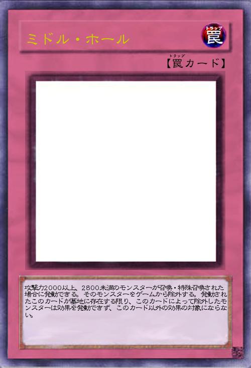 | 攻撃力2000以上、2800未満のモンスターが召喚・特殊召喚された場合に発動できる。そのモンスターをゲームから除外する。発動されたこのカードが墓地に存在する限り、このカードによって除外したモンスターは効果を発動できず、このカード以外の効果の対象にならない。 | |||