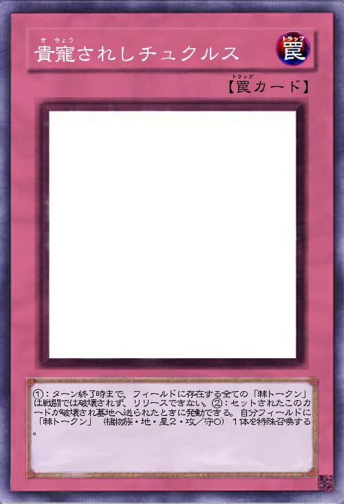 | ①:ターン終了時まで、フィールドに存在する全ての「棘トークン」は戦闘では破壊されず、リリースできない。②:セットされたこのカードが破壊され墓地へ送られたときに発動できる。自分フィールドに「棘トークン」(植物族・地・星2・攻/守0)1体を特殊召喚する。 | |||