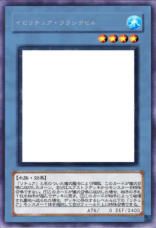 | 「リチュア」と名のついた儀式魔法により降臨。このカードが儀式召喚に成功したターン、自分はエクストラデッキからモンスターを特殊召喚できない。①このカードが儀式召喚に成功した場合、相手の手札1枚を相手が選んでデッキに戻す。②このカードが相手によって破壊され墓地へ送られた場合、デッキに存在するレベル4以下の「リチュア」モンスター1体を選択して自分フィールド上に特殊召喚できる。 | |||