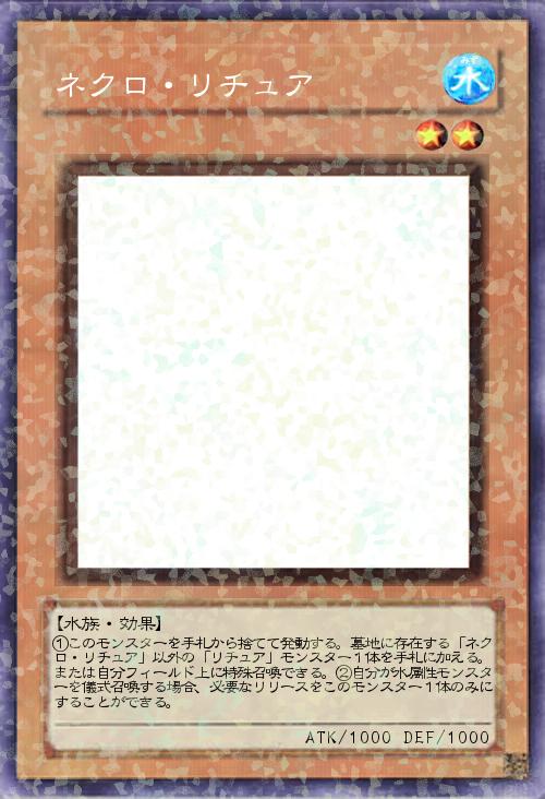 | ①このモンスターを手札から捨てて発動する。墓地に存在する「ネクロ・リチュア」以外の「リチュア」モンスター1体を手札に加える。または自分フィールド上に特殊召喚できる。②自分が水属性モンスターを儀式召喚する場合、必要なリリースをこのモンスター1体のみにすることができる。 | |||