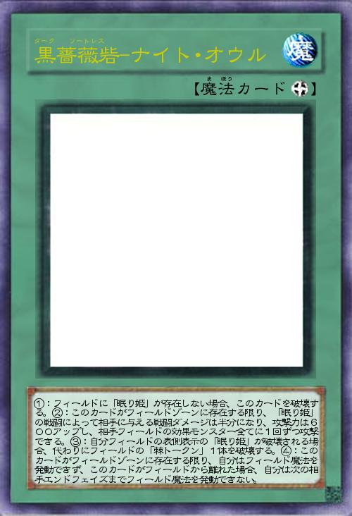 | ①:フィールドに「眠り姫」が存在しない場合、このカードを破壊する。②:このカードがフィールドゾーンに存在する限り、「眠り姫」の戦闘によって相手に与える戦闘ダメージは半分になり、攻撃力は600アップし、相手フィールドの効果モンスター全てに1回ずつ攻撃できる。③:自分フィールドの表側表示の「眠り姫」が破壊される場合、代わりにフィールドの「棘トークン」1体を破壊する。④:このカードがフィールドゾーンに存在する限り、自分はフィールド魔法を発動できず、このカードがフィールドから離れた場合、自分は次の相手エンドフェイズまでフィールド魔法を発動できない。 | |||