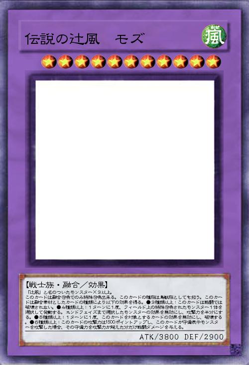 6体という多い数ですが、辻風モンスターを素材に出てきたモズの力はまさに伝説。最初の3つ目の効果でさえ多少厄介になるのに、素材が増える度にどんどん凶悪になっていく…。ステータスも今までで一番高いので、なんとしても融合したモンスターですね。」(2014-10-07 21:07)