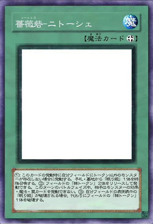 オネストや収縮などを気にせず「眠り姫」を攻撃させることができるカード。戦闘破壊をトリガーとするモンスターの効果も発動できないことも考慮して2体リリースにしました。当然ながら永続効果は防げないので注意。」(2014-10-07 22:08)