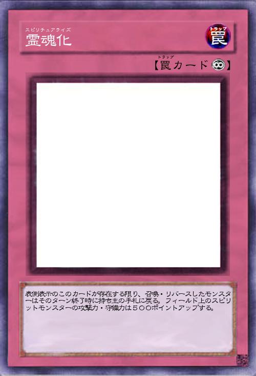 | 表側表示のこのカードが存在する限り、召喚・リバースしたモンスターはそのターン終了時に持ち主の手札に戻る。フィールド上のスピリットモンスターの攻撃力・守備力は500ポイントアップする。 | |||