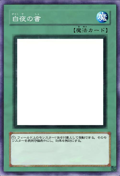 太陽の書、月の書どちらとも異なる表側守備表示にする効果です。モンスター効果を無効にするので、自軍に使うことの多い太陽の書よりは月の書に近い使い方になるでしょうか。