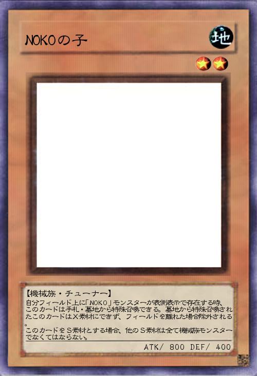 自分フィールド上に「NOKO」モンスターが表側表示で存在する時、このカードは手札・墓地から特殊召喚できる。墓地から特殊召喚されたこのカードはX素材にできず、フィールドを離れた場合除外される。 このカードをS素材とする場合、他のS素材は全て機械族モンスターでなくてはならない。 |