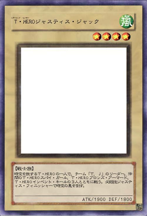 | 時空を旅するT・HEROの一人で、チーム「T.J」のリーダー。仲間のT・HEROスパイ・ガール、T・HEROブロンズ・アーマード、T・HEROインベント・キールの3人とともに戦う。必殺技ジャスティス・フィニッシャーで時空の悪を倒す。 | |||