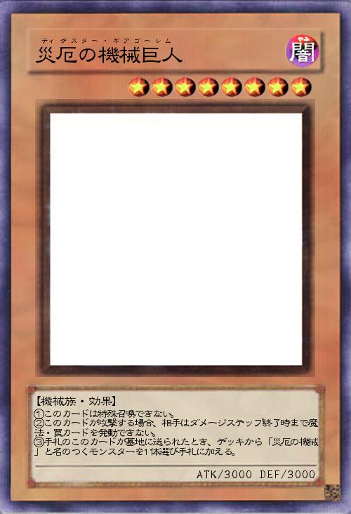 ①このカードは特殊召喚できない。 ②このカードが攻撃する場合、相手はダメージステップ終了時まで魔法・罠カードを発動できない。 ③手札のこのカードが墓地に送られたとき、デッキから「災厄の機械」と名のつくモンスターを1体選び手札に加える。 |