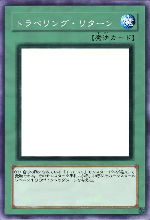 | ①:自分の除外されている「T・HERO」モンスター1体を選択して発動できる。そのモンスターを手札に加え、相手にそのモンスターのレベル×100ポイントのダメージを与える。 | |||