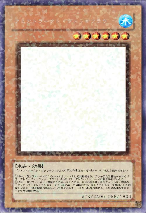 「フェアトラークト・ヴァッサフラウ」の①②の効果はそれぞれ1ターンに1度しか使用できない。 ①:手札・自分フィールドのこのカードをリリースして発動できる。デッキまたは墓地からから「フェアトラークト・ヴァッサフラウ」以外の「フェアトラークト」カード1枚を手札に加える。 ②:手札・自分フィールド・墓地のこのカードとこのカード以外の手札・自分フィールド・墓地の「フェアトラークト」モンスターをデッキに戻して発動できる。戻したモンスターを素材とした融合モンスター1体を融合召喚扱いとしてエクストラデッキから特殊召喚する。この効果は相手のターンでも発動できる。 |