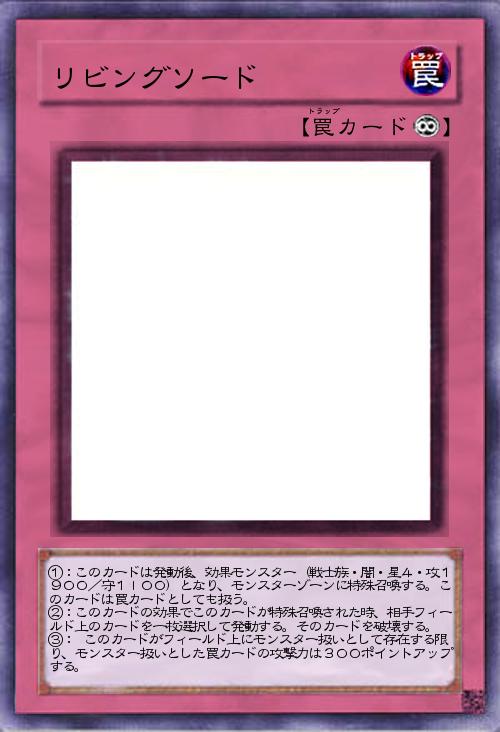 ①:このカードは発動後、効果モンスター(戦士族・闇・星4・攻1900/守1Ⅰ00)となり、モンスターゾーンに特殊召喚する。このカードは罠カードとしても扱う。 ②:このカードの効果でこのカードが特殊召喚された時、相手フィールド上のカードを一枚選択して発動する。そのカードを破壊する。 ③: このカードがフィールド上にモンスター扱いとして存在する限り、モンスター扱いとした罠カードの攻撃力は300ポイントアップする。 |