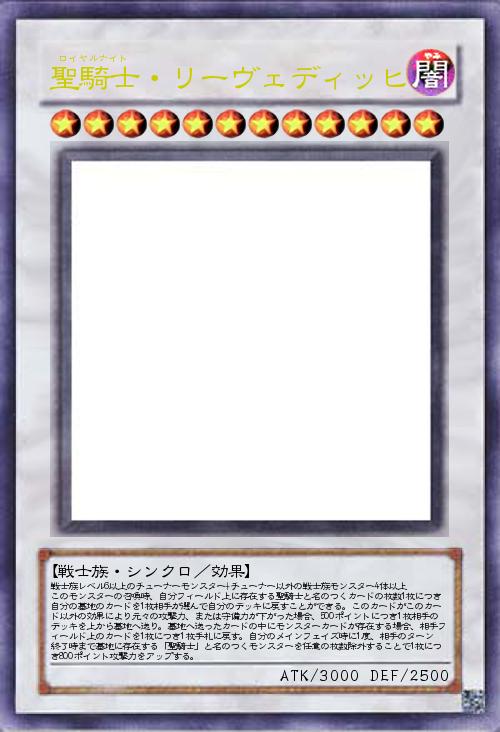 戦士族レベル6以上のチューナーモンスター+チューナー以外の戦士族モンスター4体以上 このモンスターの召喚時、自分フィールド上に存在する聖騎士と名のつくカードの枚数1枚につき自分の墓地のカードを1枚相手が選んで自分のデッキに戻すことができる。このカードがこのカード以外の効果により元々の攻撃力、または守備力が下がった場合、500ポイントにつき1枚相手のデッキを上から墓地へ送り。墓地へ送ったカードの中にモンスターカードが存在する場合、相手フィールド上のカードを1枚につき1枚手札に戻す。自分のメインフェイズ時に1度、相手のターン終了時まで墓地に存在する「聖騎士」と名のつくモンスターを任意の枚数除外することで1枚につき800ポイント攻撃力をアップする。 |