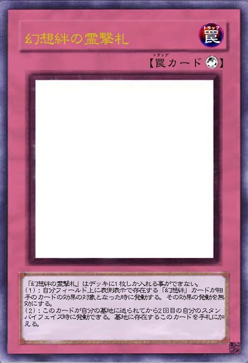 「幻想絆の霊撃札」はデッキに1枚しか入れる事ができない。 (1):自分フィールド上に表側表示で存在する「幻想絆」カードが相手のカードの効果の対象となった時に発動する。その効果の発動を無効にする。 (2):このカードが自分の墓地に送られてから2回目の自分のスタンバイフェイズ時に発動できる。墓地に存在するこのカードを手札に加える。 |