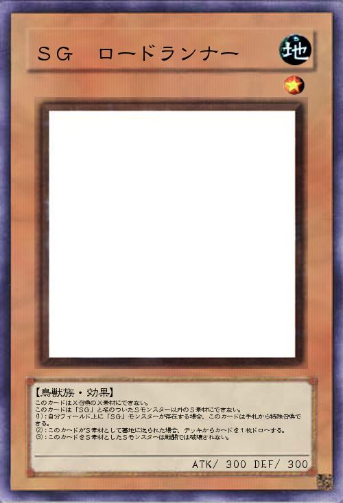 このカードはX召喚のX素材にできない。 このカードは「SG」と名のついたSモンスター以外のS素材にできない。 (1):自分フィールド上に「SG」モンスターが存在する場合、このカードは手札から特殊召喚できる。 (2):このカードがS素材として墓地に送られた場合、デッキからカードを1枚ドローする。 (3):このカードをS素材としたSモンスターは戦闘では破壊されない。 |