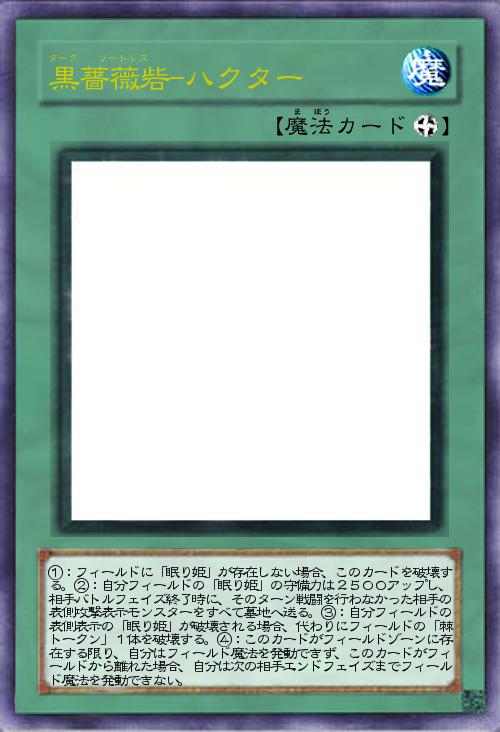 | ①:フィールドに「眠り姫」が存在しない場合、このカードを破壊する。②:自分フィールドの「眠り姫」の守備力は2500アップし、相手バトルフェイズ終了時に、そのターン戦闘を行わなかった相手の表側攻撃表示モンスターをすべて墓地へ送る。③:自分フィールドの表側表示の「眠り姫」が破壊される場合、代わりにフィールドの「棘トークン」1体を破壊する。④:このカードがフィールドゾーンに存在する限り、自分はフィールド魔法を発動できず、このカードがフィールドから離れた場合、自分は次の相手エンドフェイズまでフィールド魔法を発動できない。 | |||