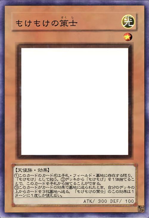 ①このカードのカード名は手札・フィールド・墓地に存在する限り、「もけもけ」として扱う。②デッキから「もけもけ」を1体捨てることで、このカードを手札から捨てることができる。 ③このカードがカードの効果で墓地に送られたとき、自分のデッキの上からカードを3枚墓地へ送る。「もけもけの策士」のこの効果は1ターンに1度しか使えない。 |