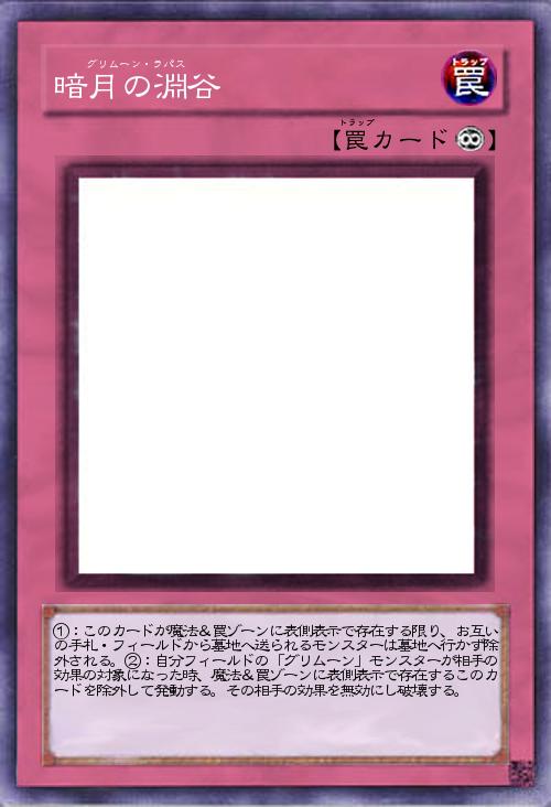 | ①:このカードが魔法&罠ゾーンに表側表示で存在する限り、お互いの手札・フィールドから墓地へ送られるモンスターは墓地へ行かず除外される。②:自分フィールドの「グリムーン」モンスターが相手の効果の対象になった時、魔法&罠ゾーンに表側表示で存在するこのカードを除外して発動する。その相手の効果を無効にし破壊する。 | |||