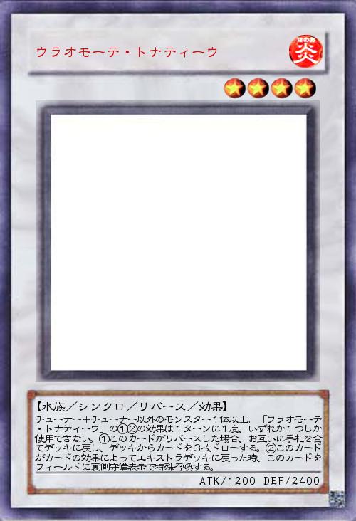 チューナー+チューナー以外のモンスター1体以上。「ウラオモーテ・トナティーウ」の①②の効果は1ターンに1度、いずれか1つしか使用できない。①このカードがリバースした場合、お互いに手札を全てデッキに戻し、デッキからカードを3枚ドローする。②このカードがカードの効果によってエキストラデッキに戻った時、このカードをフィールドに裏側守備表示で特殊召喚する。 |