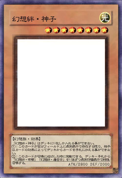 「幻想絆・神子」はデッキに1枚しか入れる事ができない。 ①:このカードが自分フィールド上に表側表示で存在する限り、相手はカードの効果によってデッキからカードを手札に加える事ができない。 ②:このカードが召喚に成功した時に発動できる。デッキ・手札から「幻想絆・布都」「幻想絆・屠自古」を1体ずつ表側守備表示で特殊召喚する。 |
