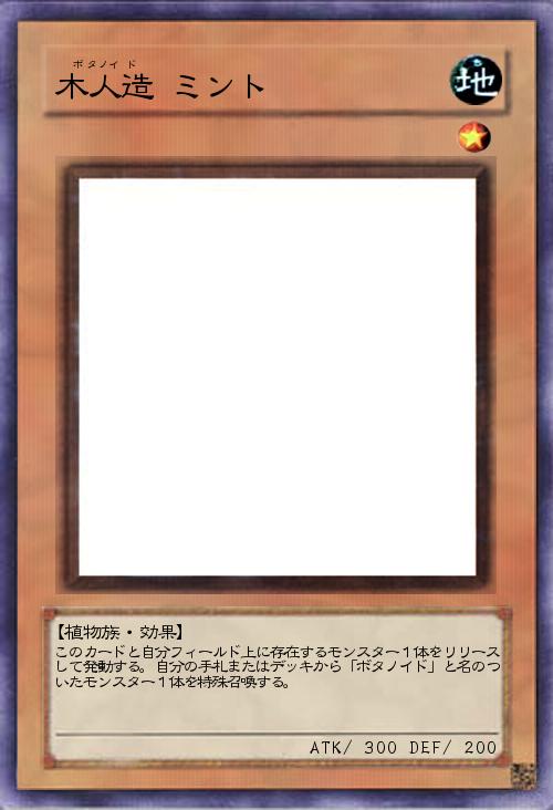| このカードと自分フィールド上に存在するモンスター1体をリリースして発動する。自分の手札またはデッキから「ボタノイド」と名のついたモンスター1体を特殊召喚する。 | |||