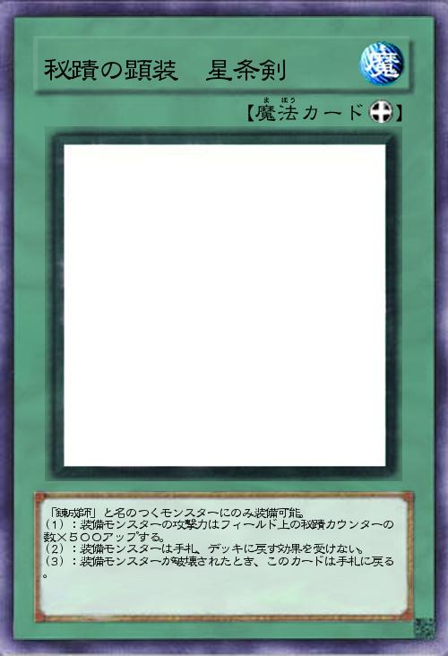 「錬成師」と名のつくモンスターにのみ装備可能。 (1):装備モンスターの攻撃力はフィールド上の秘蹟カウンターの数×500アップする。 (2):装備モンスターは手札、デッキに戻す効果を受けない。 (3):装備モンスターが破壊されたとき、このカードは手札に戻る。 |