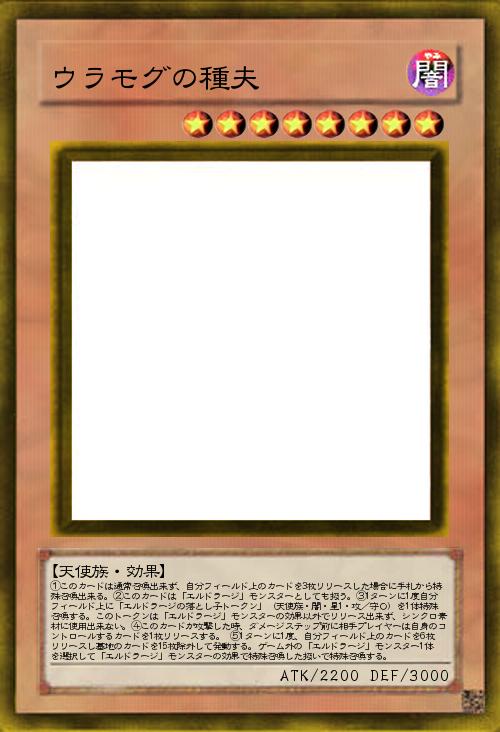 「このカードは通常召喚できない。自分フィールド上のカード3枚をリリースした場合に手札から特殊召喚できる。このカードはルール上、「エルドラージ」モンスターとして扱う。①:1ターンに1度、自分メインフェイズに発動できる。自分フィールドに「エルドラージの落とし子トークン」(天使族・闇・星1・攻/守0)1体を特殊召喚する。「エルドラージの落とし子トークン」は「エルドラージ」モンスターを特殊召喚する場合以外ではリリースできず、融合・S素材にできない。②:1ターンに1度、自分フィールドのカード6枚をリリースし、自分の墓地のカード15枚を除外して発動できる。除外されている自分の「エルドラージ」モンスター1体を選んで特殊召喚する。③:このカードの攻撃宣言時に発動する。相手は自身のフィールドのカード1枚を選んでリリースしなければならない。」(2014-11-30 23:05)