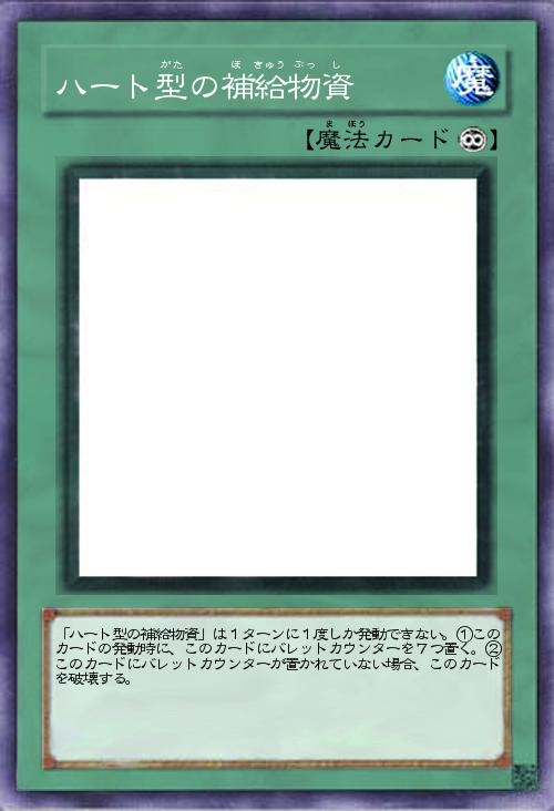 | 「ハート型の補給物資」は1ターンに1度しか発動できない。①このカードの発動時に、このカードにバレットカウンターを7つ置く。②このカードにバレットカウンターが置かれていない場合、このカードを破壊する。 | |||