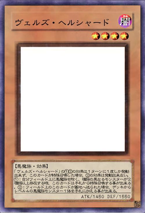 | 「ヴェルズ・ヘルシャード」の①②の効果は1ターンに1度しか発動出来ず、このカードが特殊召喚した場合、②の効果は発動出来ない。①:自分フィールド上に悪魔族を除く、種族の異なるモンスターが2種類以上存在する時、このカードは手札から特殊召喚する事が出来る。②:フィールド上のこのカードが墓地へ送られた場合、デッキからレベル4の悪魔族モンスター1体を手札に加える事が出来る。 | |||