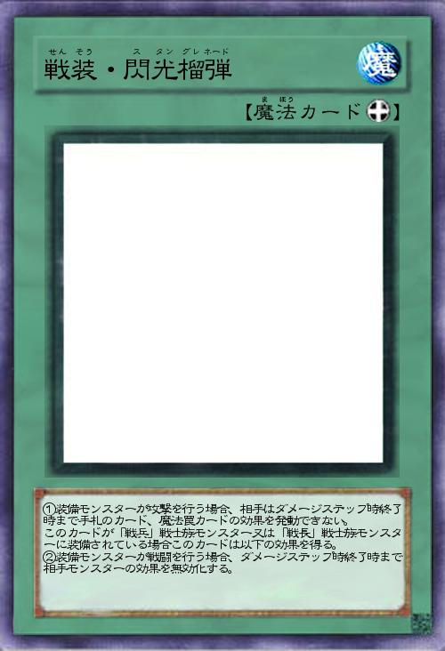 ①装備モンスターが攻撃を行う場合、相手はダメージステップ時終了時まで手札のカード、魔法罠カードの効果を発動できない。 このカードが「戦兵」戦士族モンスター又は「戦長」戦士族モンスターに装備されている場合このカードは以下の効果を得る。 ②装備モンスターが戦闘を行う場合、ダメージステップ時終了時まで相手モンスターの効果を無効化する。 |