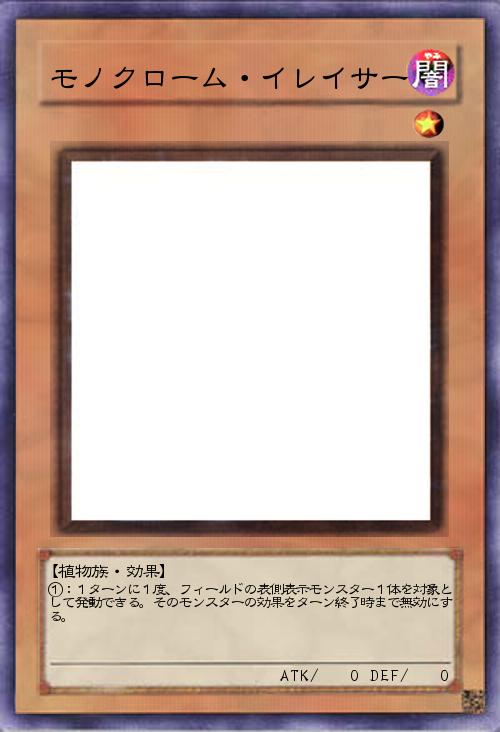 | ①:1ターンに1度、フィールドの表側表示モンスター1体を対象として発動できる。そのモンスターの効果をターン終了時まで無効にする。 | |||