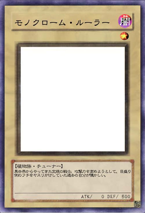 | 異世界からやってきた定規の戦士。攻撃力を高めようとして、目盛り側のフチをヤスリがけしていた過去の自分が懐かしい。 | |||