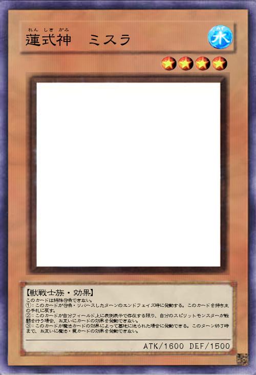 このカードは特殊召喚できない。 ①:このカードが召喚・リバースしたターンのエンドフェイズ時に発動する。このカードを持ち主の手札に戻す。 ②:このカードが自分フィールド上に表側表示で存在する限り、自分のスピリットモンスターが戦闘を行う場合、お互いにカードの効果を発動できない。 ③:このカードが魔法カードの効果によって墓地に送られた場合に発動できる。このターン終了時まで、お互いに魔法・罠カードの効果を発動できない。 |