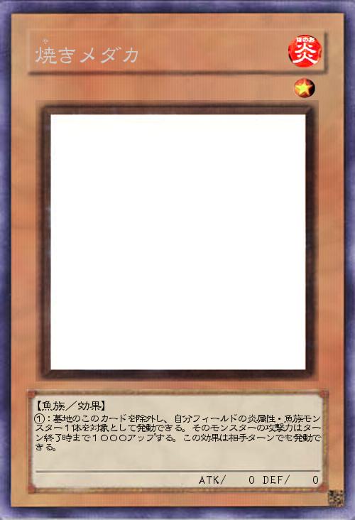 | ①:墓地のこのカードを除外し、自分フィールドの炎属性・魚族モンスター1体を対象として発動できる。そのモンスターの攻撃力はターン終了時まで1000アップする。この効果は相手ターンでも発動できる。 | |||