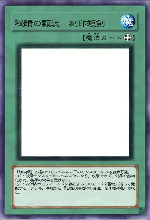 「錬成師」と名のつくレベル4以下のモンスターにのみ装備可能。 (1):装備モンスターのレベルは倍になり、攻撃できず、効果を無効化され、相手の効果を受けない。 (2):表側表示でフィールドに存在するこのカードを墓地に送って発動する。デッキ、墓地から「伝説の錬成師の帰還」を1枚手札に加える。 |