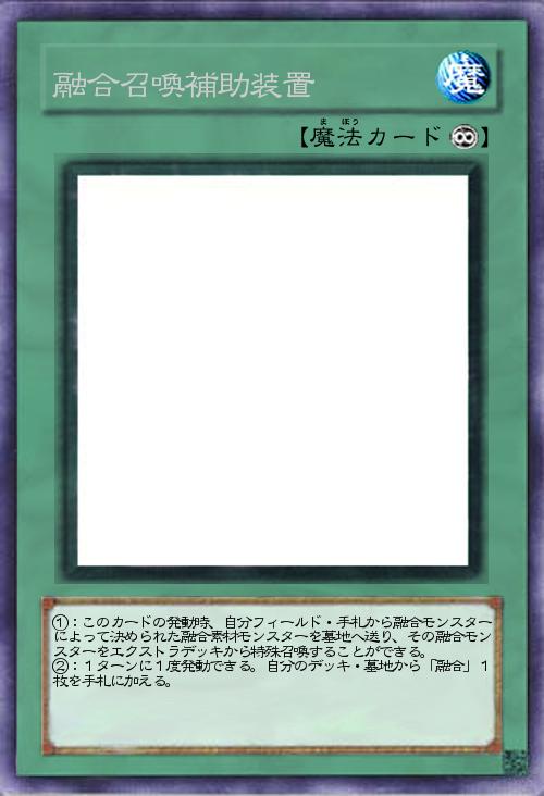 ①:このカードの発動時、自分フィールド・手札から融合モンスターによって決められた融合素材モンスターを墓地へ送り、その融合モンスターをエクストラデッキから特殊召喚することができる。 ②:1ターンに1度発動できる。自分のデッキ・墓地から「融合」1枚を手札に加える。 |