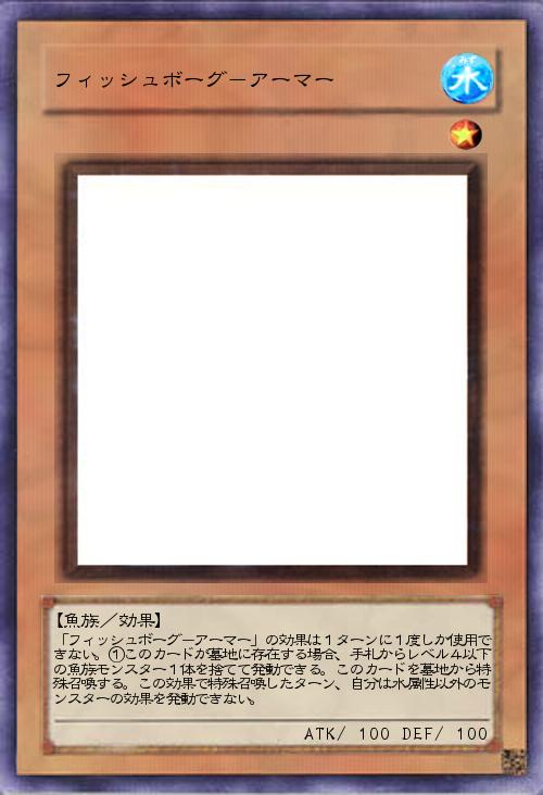 「フィッシュボーグ-アーマー」の効果は1ターンに1度しか使用できない。①このカードが墓地に存在する場合、手札からレベル4以下の魚族モンスター1体を捨てて発動できる。このカードを墓地から特殊召喚する。この効果で特殊召喚したターン、自分は水属性以外のモンスターの効果を発動できない。 |