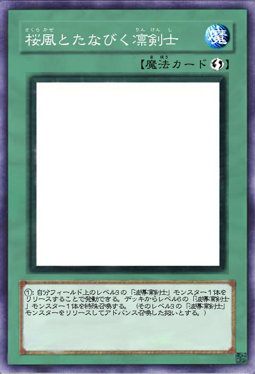 | ①:自分フィールド上のレベル3の「波導凛剣士」モンスター1体をリリースすることで発動できる。デッキからレベル6の「波導凛剣士」モンスター1体を特殊召喚する。(そのレベル3の「波導凛剣士」モンスターをリリースしてアドバンス召喚した扱いとする。) | |||