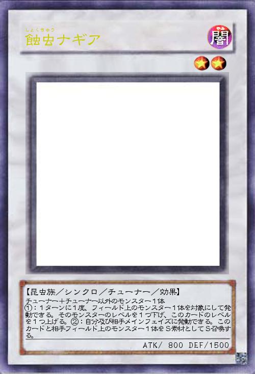 「蝕でコントロール。虫ナがチューナー。ギアもチューナーのイメージ。なんとなく名前で遊んだカード。レベル変動で相手の召喚を邪魔したり、相手のモンスターを素材にS召喚できたり。でもテクニックは必要かも。」(2015-01-06 19:52)