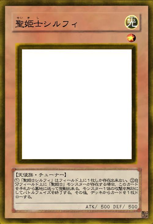 | ①「聖姫士シルフィ」はフィールド上に1枚しか存在出来ない。②自分フィールド上に「聖姫士」モンスターが存在する場合、このカードを手札から墓地に送って発動出来る。モンスター1体の攻撃を無効にしてバトルフェイズを終了する。その後、デッキからカードを1枚ドローする。 | |||