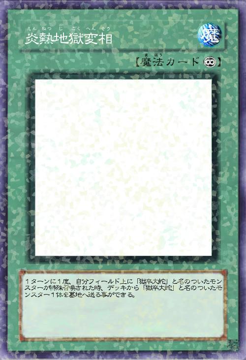 | 1ターンに1度、自分フィールド上に「獄卒大蛇」と名のついたモンスターが特殊召喚された時、デッキから「獄卒大蛇」と名のついたモンスター1体を墓地へ送る事ができる。 | |||