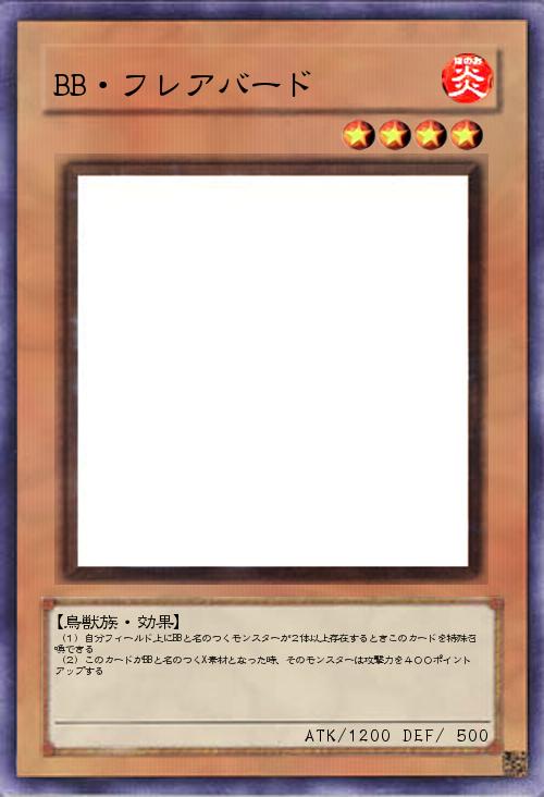 (1)自分フィールド上にBBと名のつくモンスターが2体以上存在するときこのカードを特殊召喚できる (2)このカードがBBと名のつくX素材となった時、そのモンスターは攻撃力を400ポイントアップする |