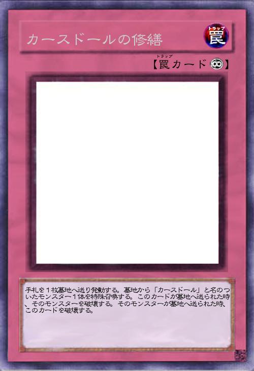 | 手札を1枚墓地へ送り発動する。墓地から「カースドール」と名のついたモンスター1体を特殊召喚する。このカードが墓地へ送られた時、そのモンスターを破壊する。そのモンスターが墓地へ送られた時、このカードを破壊する。 | |||