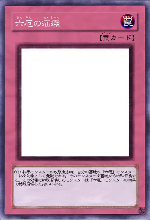 | ①:相手モンスターの攻撃宣言時、自分の墓地の「六厄」モンスター1体を対象として発動できる。そのモンスターを墓地から特殊召喚する。この効果で特殊召喚したモンスターは「六厄」モンスターの効果で特殊召喚した扱いになる。 | |||