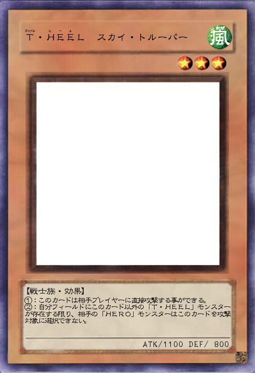 ①:このカードは相手プレイヤーに直接攻撃する事ができる。 ②:自分フィールドにこのカード以外の「T・HEEL」モンスターが存在する限り、相手の「HERO」モンスターはこのカードを攻撃対象に選択できない。 |