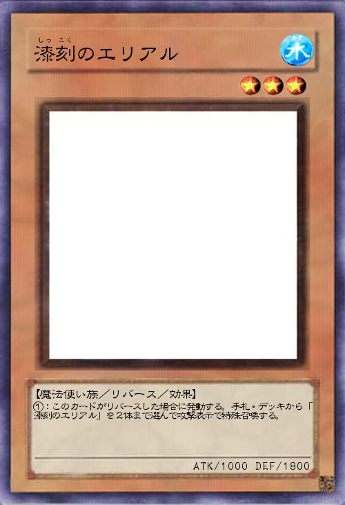 | ①:このカードがリバースした場合に発動する。手札・デッキから「漆刻のエリアル」を2体まで選んで攻撃表示で特殊召喚する。 | |||